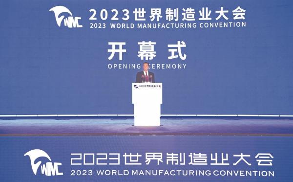 王勇在致辞中指出,世界制造业大会作为宣传展示先进制造业发展成果、促进制造业国际合作的重要窗口和平台,为全球制造业高质量发展注入了新动能。当前,世界百年未有之大变局加速演进,全球经济格局正在深刻变化,加强各领域特别是制造业领域开放合作比以往更为迫切和必要。近年来,中国政府坚持把发展经济的着力点放在实体经济上,扎实推进新型工业化,制造业高质量发展步伐明显加快,制造业增加值连续13年居世界首位,为稳定世界经济增长发挥了重要的压舱石作用。当前和今后一个时期,中国将加快建设以实体经济为支撑的现代化产业体系,深入实施创新驱动发展战略,着力实现“中国制造”向“中国创造”转变,以制造业高质量发展更好满足人民美好生活需要,坚定不移推进高水平对外开放,共同推动全球制造业繁荣发展。中国政府愿同各国一道,把握新一轮科技革命和产业变革新机遇,积极营造开放共享创新生态,扩大国际和区域科技交流合作,共同筑造安全稳定、畅通高效、开放包容、互利共赢的全球产业链供应链体系,从构建人类命运共同体出发,推动发展成果更好惠及各国人民。