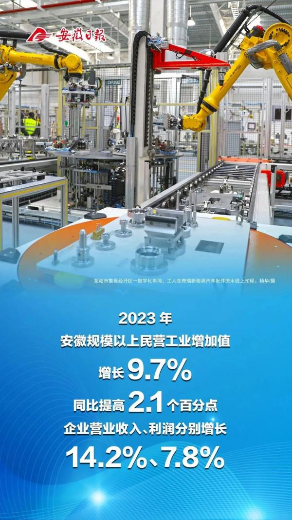 2023年,全省规模以上民营工业增加值增长9.7%、同比提高2.1个百分点,企业营业收入、利润分别增长14.2%、7.8%。