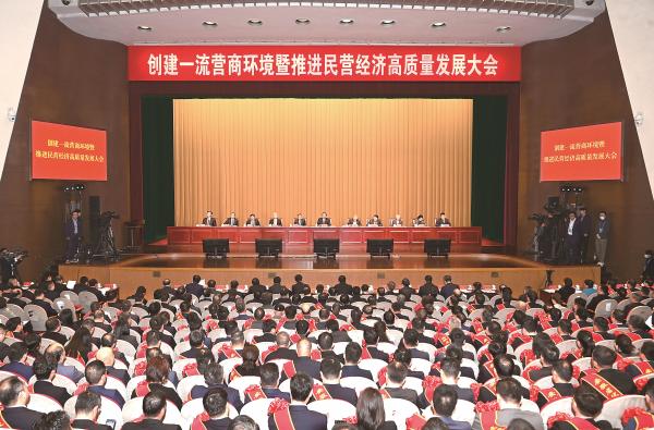 2月18日上午,省委、省政府在合肥召开创建一流营商环境暨推进民营经济高质量发展大会。省委书记韩俊出席会议并讲话。本报记者 杨 竹 范柏文 摄