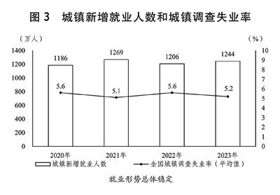 ——城镇新增就业1200万人以上,全国城镇调查失业率5.5%左右。关于城镇新增就业:主要考虑是,2024年新成长劳动力规模仍然较大,农村劳动力转移等就业结构调整也需要新的就业岗位,城镇新增就业目标由2023年的“1200万人左右”调整为2024年的“1200万人以上”,既是稳就业、调结构、增信心的客观要求,又体现了稳就业工作的力度和决心。关于城镇调查失业率:主要考虑是,在2024年经济运行风险挑战增多、重点人群就业压力较大的情况下,将预期目标稳定在5.5%左右,体现了就业优先的政策导向。