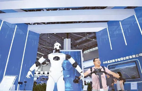 世界制造业大会是宣传展示先进制造业发展成果、促进制造业国际合作的重要窗口和平台。图为2023年9月20日,在安徽合肥举行的2023世界制造业大会上,一名观众在体验一款VR远程抓取机器人。新华社记者 张端/摄