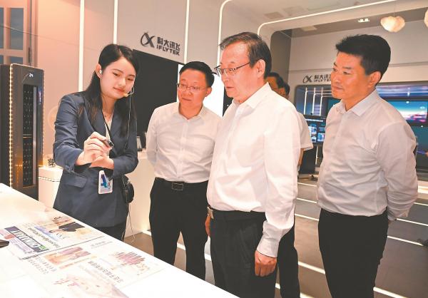 7月3日,省委书记梁言顺在科大讯飞股份有限公司调研。本报记者杨竹摄