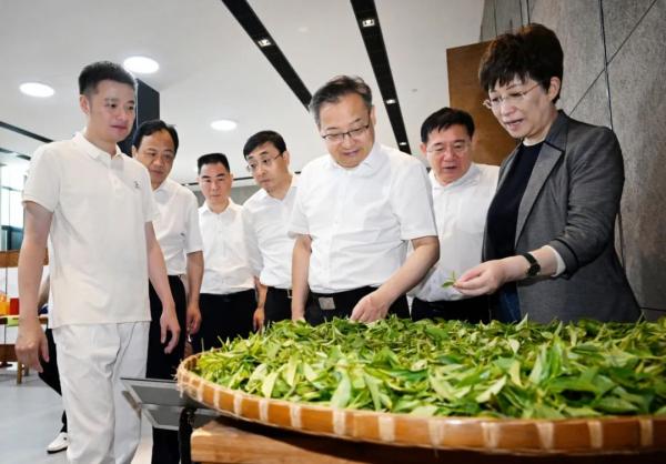 7月23日上午,省委书记梁言顺在黄山市徽州区谢裕大茶博园博物馆,察看非遗手工制茶坊,了解茶制作技艺、品牌建设等情况。