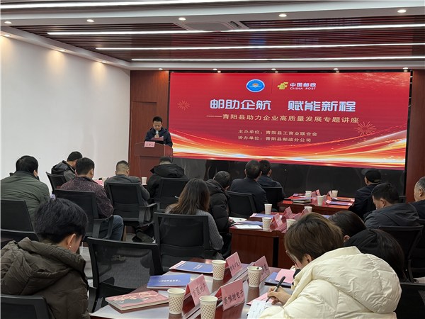 为深入贯彻党的二十届四中全会精神,助力企业高质量发展,1月9日下午,青阳县工商联联合县邮政分公司成功举办了“邮助企航 赋能新程”专题讲座。有关乡镇商会会长及会员代表齐聚一堂,共同为企业发展建言献策。